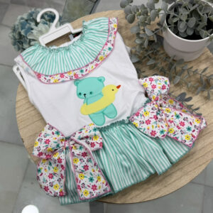 Conjunto algodon modelo osito verde rayas niña