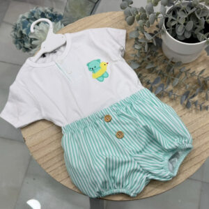 Conjunto algodon modelo osito verde rayas niño