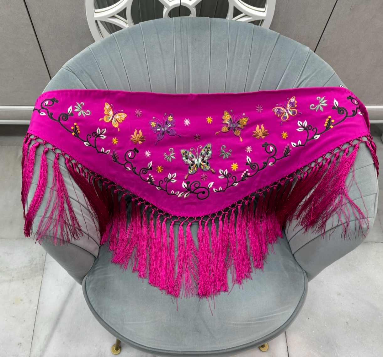 Manton bordado mariposa modelo girnalda fuxia cantidad