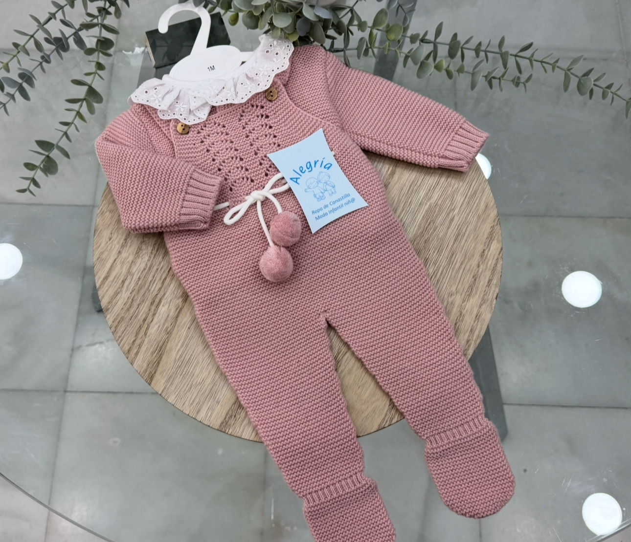 Baton largo con capota modelo plumeti talla 0/3 rosa