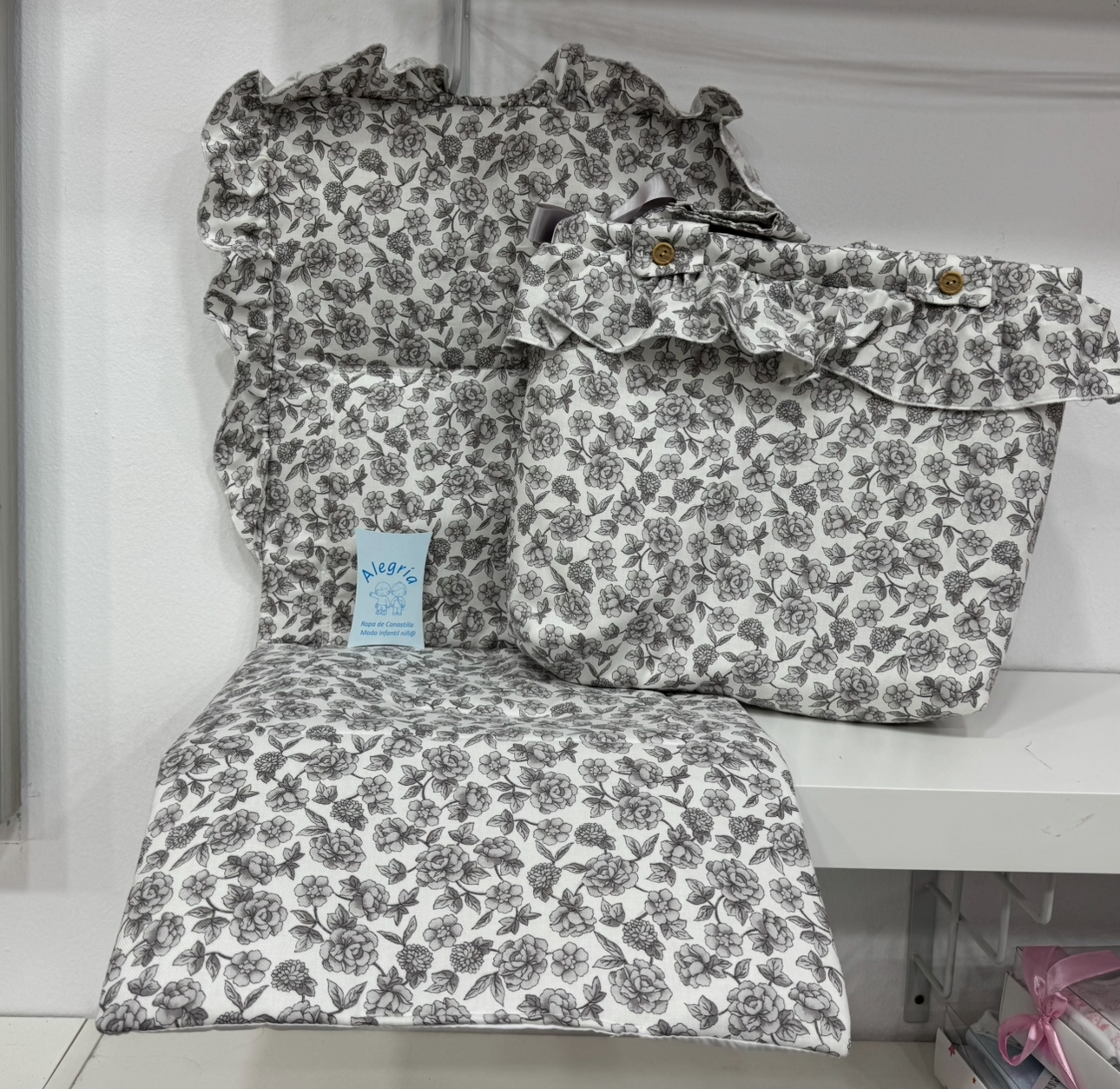 PROMO colchoneta con talega flores gris