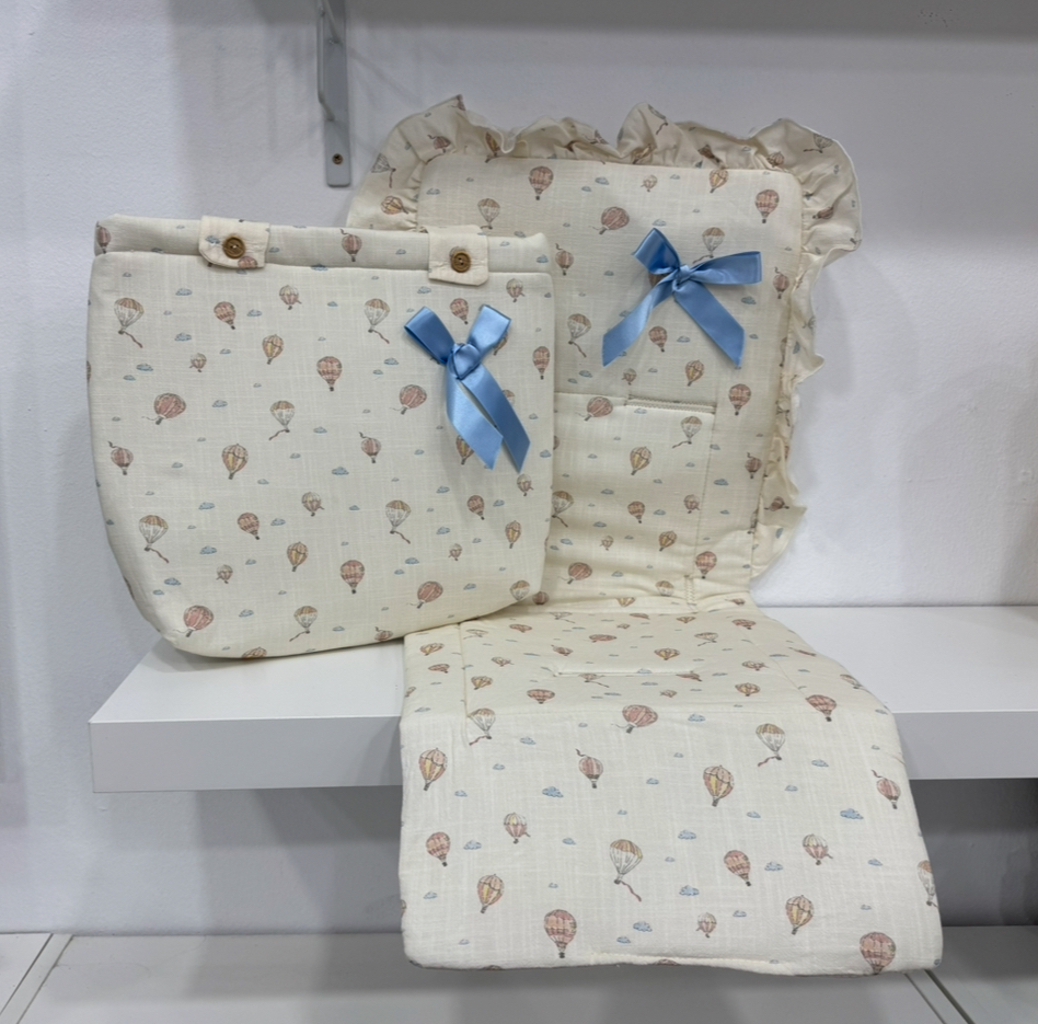 PROMO colchoneta con talega globos lazo celeste