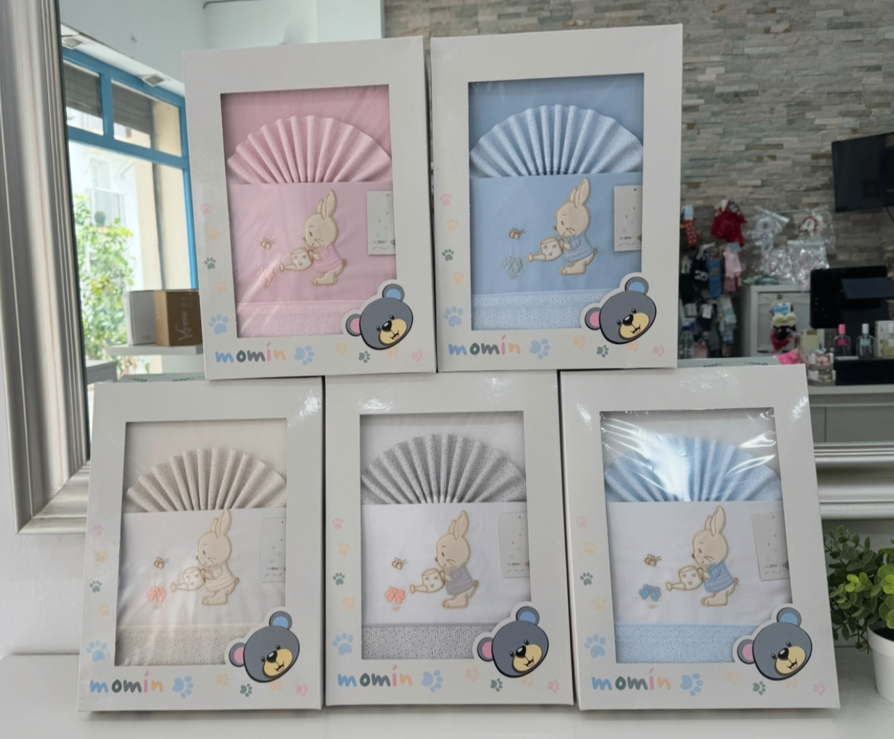 | Colores | blanco celeste, Blanco crudo, Blanco Gris, Celeste, Rosa |